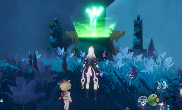 四跟着萤火虫,这个特效又很明显了,跟着地上亮光就行。